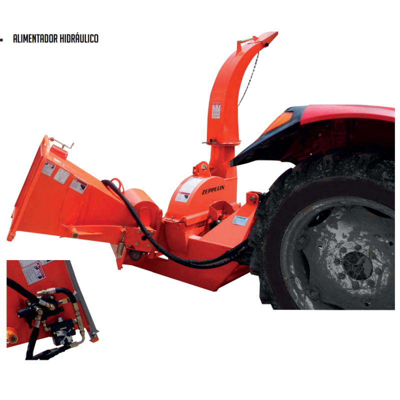 Alimentación manual. Tritura madera (troncos, ramas) y plantas leñosas (setos, arbustos, etc.). Chimenea de salida regulable. Dimensiones: 1630x840x1240 mm. Peso: 180 Kg. Diámetro: 130 mm. Cuchillas: 2 PTO: 540 r/min. Potencia requerida: 20-30 HP.